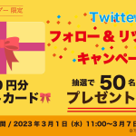 2023年3月1日 / 最終更新日時 : 2023年3月1日 admin イベント情報 【荻野屋 弦 有楽町】2周年記念Twitterキャンペーン開催中 荻野屋 弦有楽町店OPEN2周年を記念して「モバイルオーダーで使える」500円ギフトカードを抽選で 50名様 プレゼントするキャンペーンを開催しております!