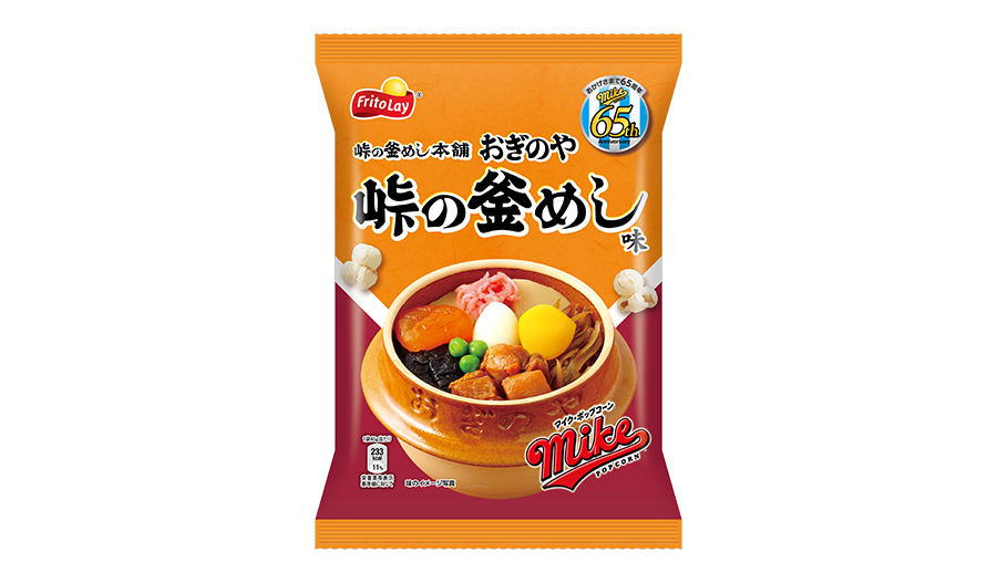 今年、発売65周年の「マイクポップコーン」と「峠の釜めし」創案65周年を迎える株式会社荻野屋がコラボした「マイクポップコーン 峠の釜めし味」を荻野屋直営店で先行販売いたします。茶めしが炊けたときの香りと、具材の鶏肉、ごぼう、しいたけ、昆布だししょうゆの旨味があとをひく味わいです。